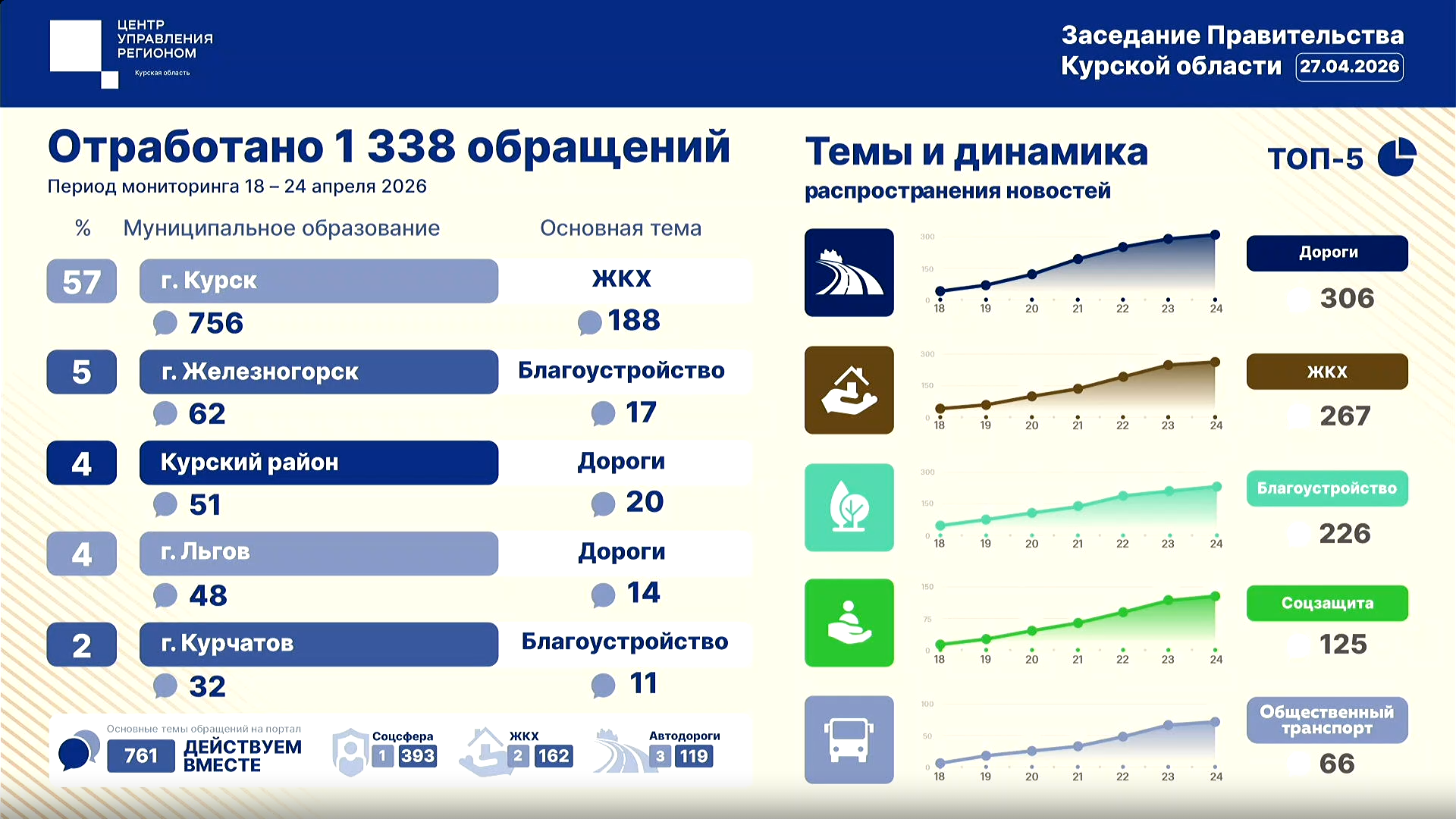 ЦУР Курской области отработал 1 338 обращений за семь дней.