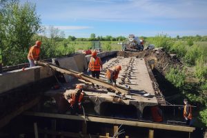 На время ремонта моста через реку Косоржа дорожники организовали реверсивное движение